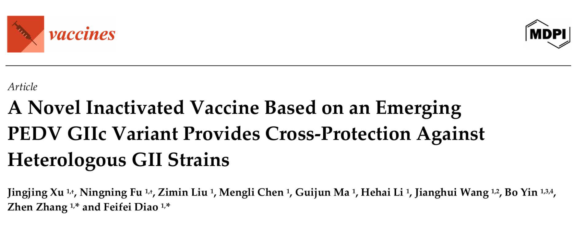 近日,由农业农村部新型动物生物制品创制重点实验室联合申联生物医药(上海)股份有限公司研发团队主导完成的题为《一种基于新兴 PEDV GIIc 变异株的新型灭活疫苗对异源毒株提供广泛交叉保护作用》的研究论文,已于国际权威学术期刊《Vaccines》(5 年平均影响因子:5.2)正式在线发表,这也是申联生物近期取得的第二篇高分学术论文成果。此项研究成功分离出一株新兴的 PEDV GIIc 变异株(PEDV-HeN2024),并以此为基础开发了一种新型灭活疫苗,该疫苗在实验中对当前流行的异源 GIIa、GIIb 毒株均展现出良好的交叉保护效力,为解决猪流行性腹泻病毒(PEDV)变异株防控提供了新的解决方案。