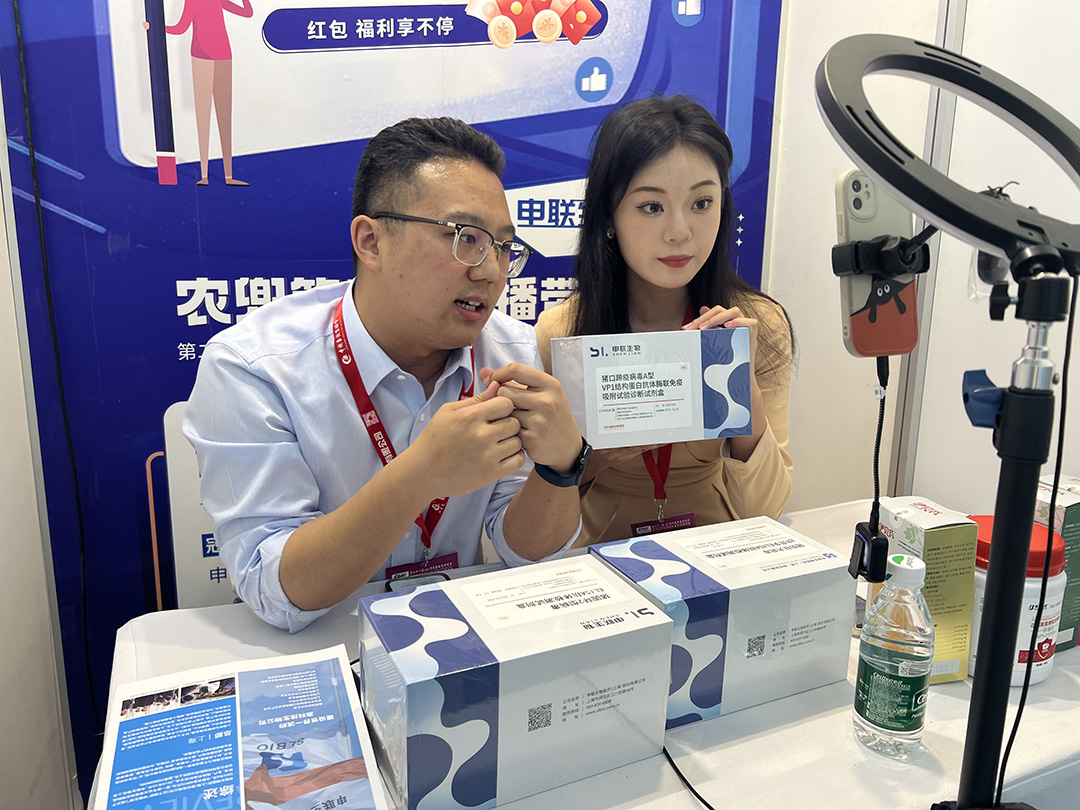 活动现场搭建了五个直播间,专业主播们同时上线多个直播平台,为养殖场带来了优质低价的好产品。活动期间,申联生物诊断试剂首次登陆直播间,火爆全场!
