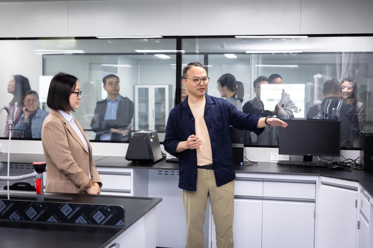 随后,在技术总监殷波的陪同下,陈晓强书记一行实地参观了研发中心,详细了解了申联生物在动物疫苗、诊断试剂及治疗产品等领域的创新成果和先进生产工艺。双方都表示将以此次交流活动为契机,进一步加强科研合作与资源共享,深入推进双方党建与科研深度融合的创新实践,共同开创产学研合作共赢的新局面。
