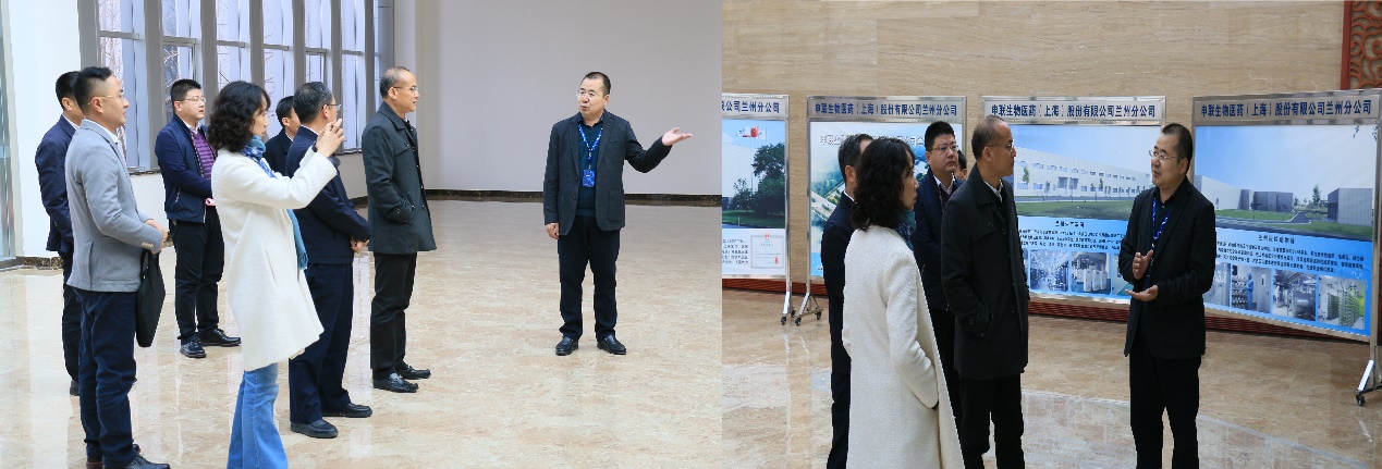 2020年10月30日上午,甘肃省科技厅党组书记张世荣、办公室主任谢正团、区域创新处处长马锟一行到申联生物兰州分公司调研考察。兰州新区党工委书记杨建忠、党工委办公室、科技局、科文旅集团等单位及领导陪同调研。