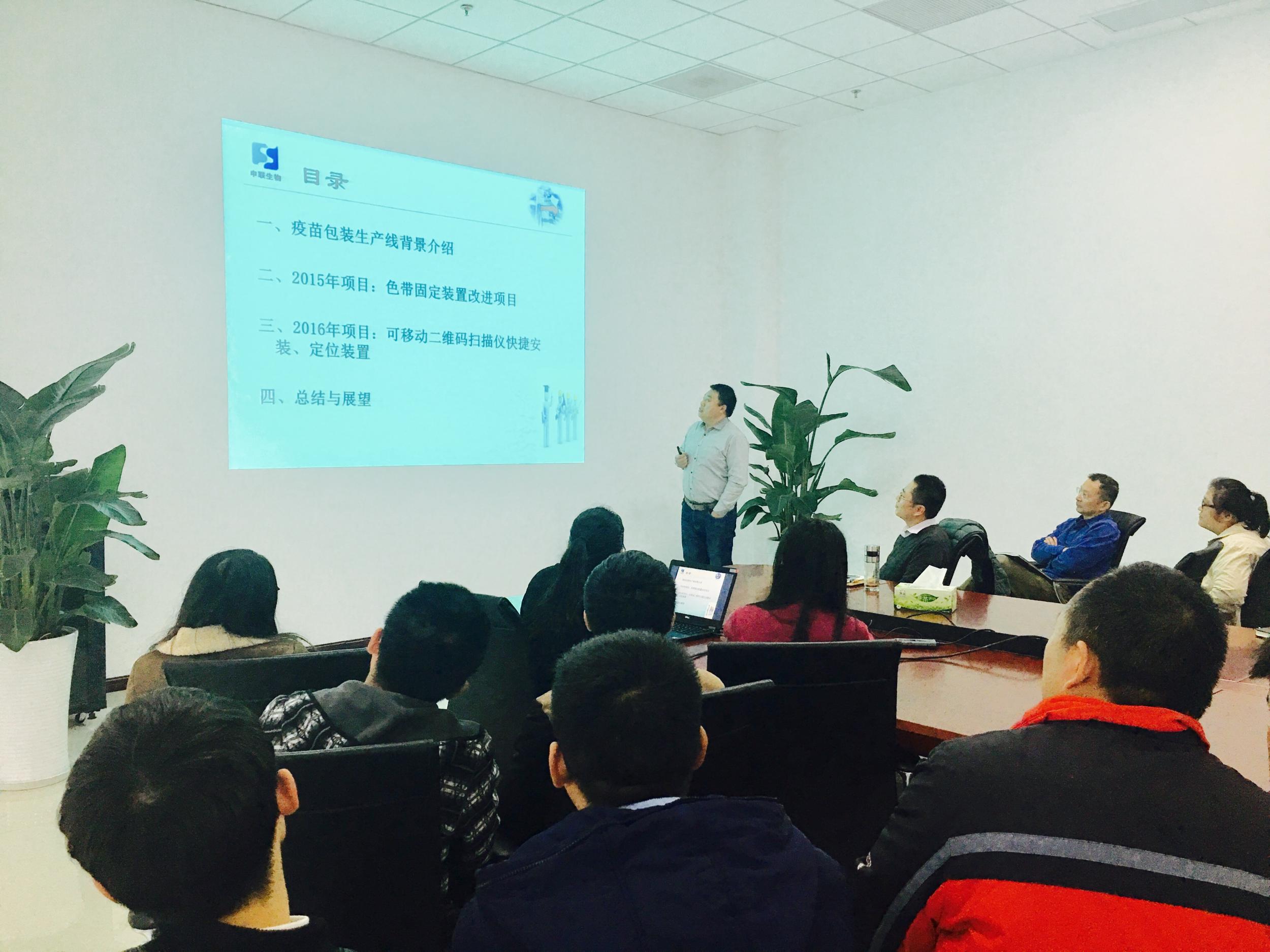 讲堂上,邀请到务实的创新代表,疫苗车间任冬飞及合成肽车间杭菊英为大家带来近年来工作中的创新分享。