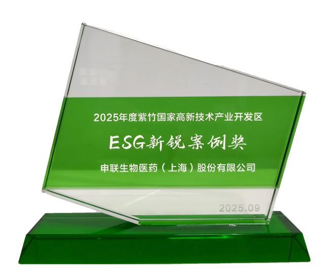 在论坛同期举行的ESG颁奖典礼中,申联生物荣膺“2025年度紫竹国家高新技术产业开发区ESG新锐案例奖”。该奖项旨在表彰公司在环境、社会及治理(ESG)领域的卓越实践与创新成果,彰显了主办方对申联生物在可持续发展领域取得的实质性进展的高度认可。