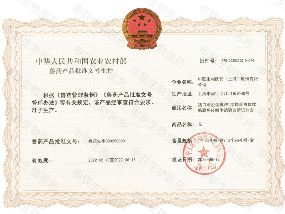 猪口蹄疫病毒VP1结构蛋白抗体酶联免疫吸附试验诊断试剂盒