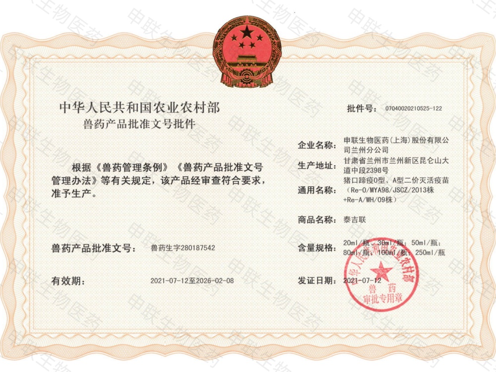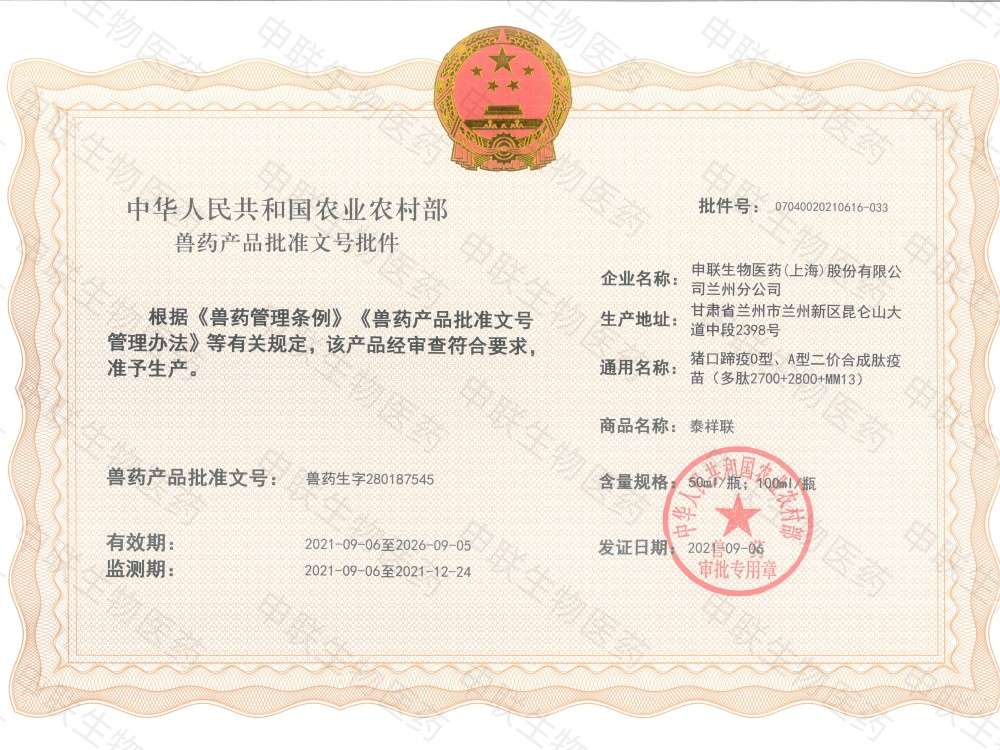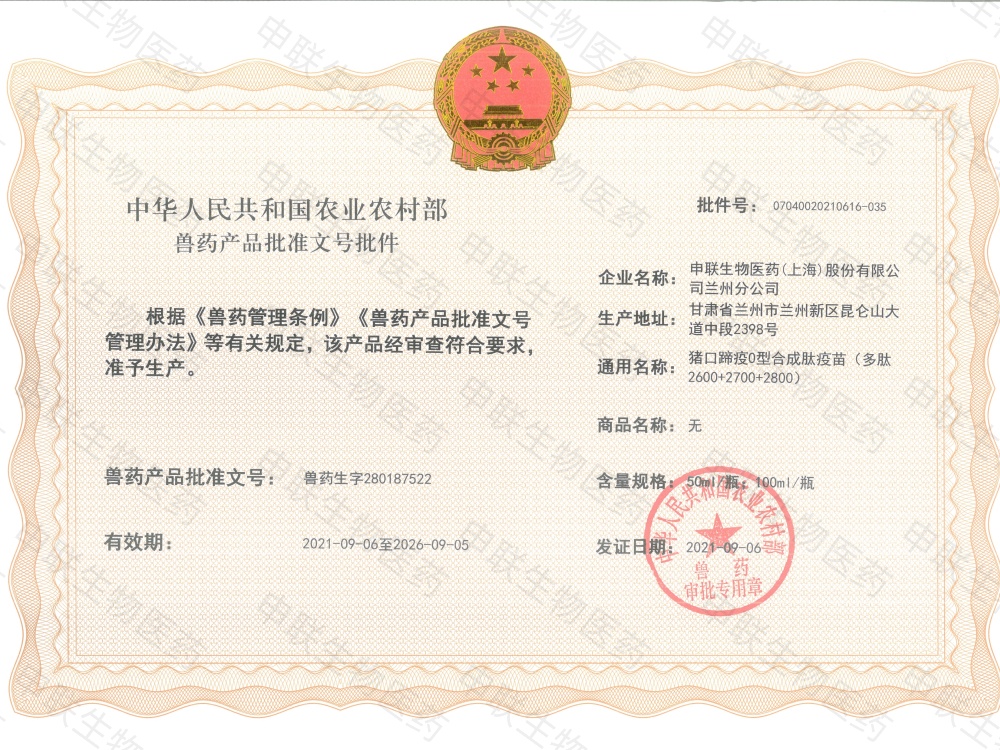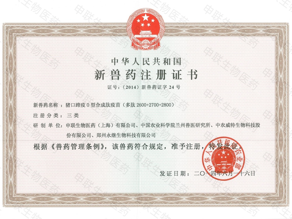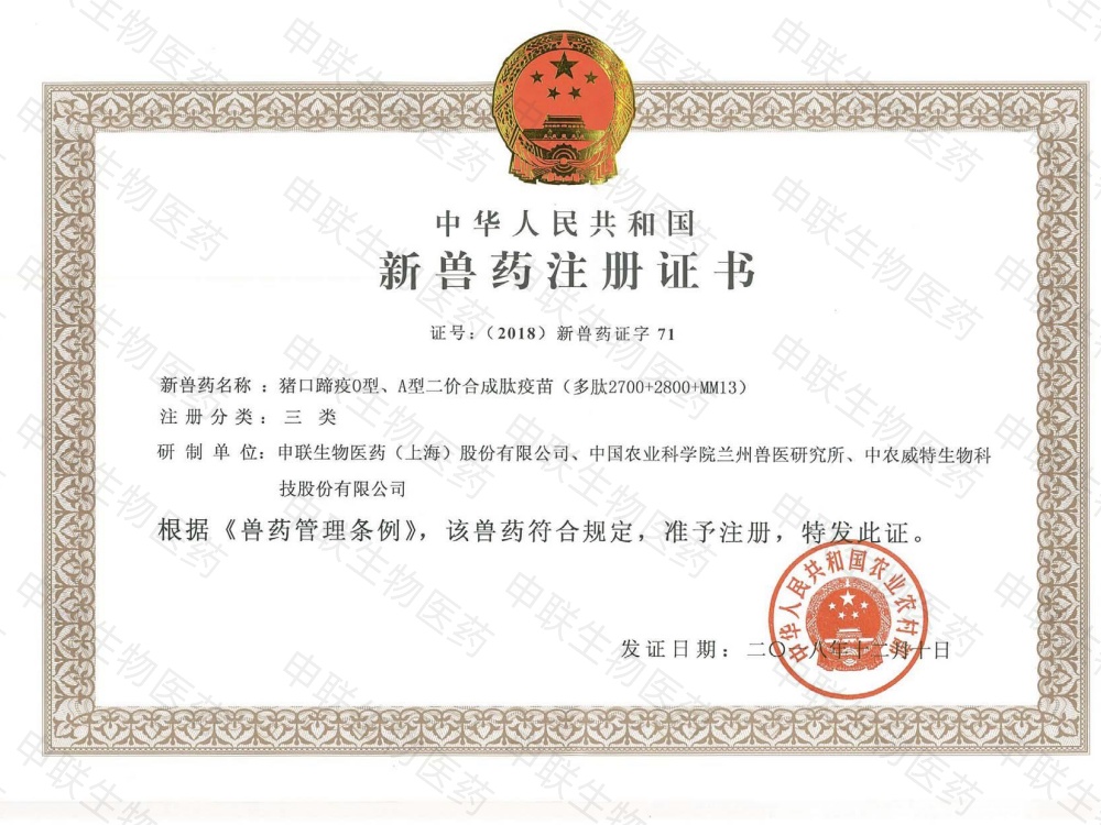 猪口蹄疫O型、A型二价合成肽疫苗(多肽2700+2800+MM13)