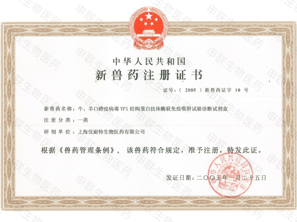 牛、羊口蹄疫病毒VP1结构蛋白抗体酶联免疫吸附试验诊断试剂盒